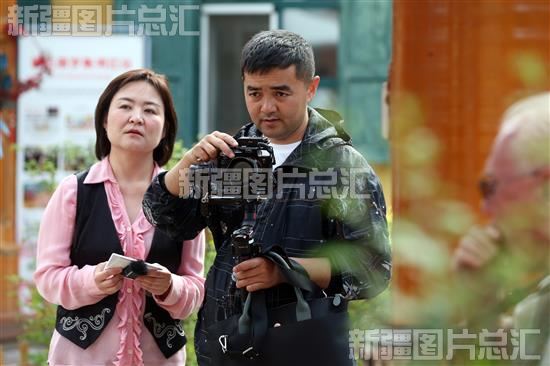 2023年5月19日,俄罗斯风情园,新疆日报记者正在采访拍摄。