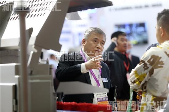2023年4月20日,参展商向客户介绍设备。