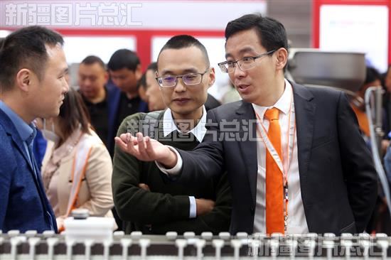 2023年4月20日,参展商向客户介绍设备。