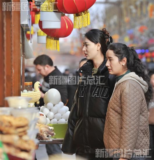 2024年1月20日,游客在位于喀什古城景区的汗巴扎美食街选购美食。