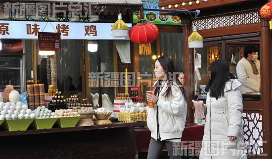 2024年1月20日,游客在位于喀什古城景区的汗巴扎美食街游览。