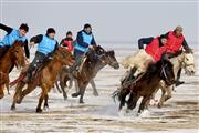 2024年1月22日,选手在雪上刁羊比赛中激烈拼抢。
