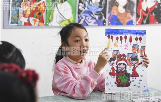 关键字:喀什地区 喀什市 夏马勒巴格镇 喀什大学 实践教学基地 文化 教育 绘画教室 老师 孩子 小朋友 学生 创作 描绘 绘制 憧憬 年画 作品 萌娃 迎新春