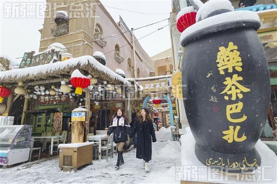 当日,喀什古城迎来入冬以来的第一场大雪,纷纷扬扬的雪花漫天飞舞,把古城装点得银装素裹,挂满积雪的树枝,雪中摇曳的大红灯笼,迫不及待地迎接新春,宛如一幅瑞雪兆丰年的图画。