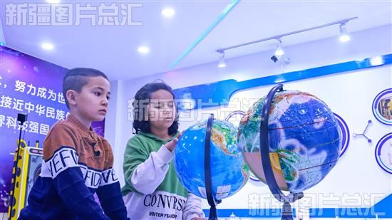 2024年1月23日,在博乐市青得里街道东方红社区科普园地内,小朋友们近距离体验科普展具,感知科技魅力。