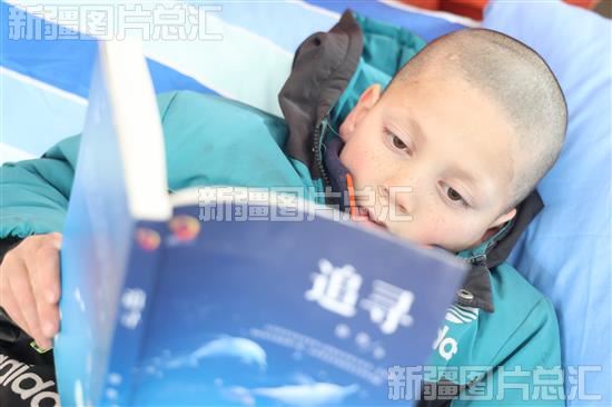 2024年1月24日,在乌什县亚曼苏柯尔克孜族乡尤喀克牙曼苏村,一名学生在安置点阅读。