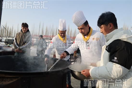 2024年1月24日,在乌什县亚曼苏柯尔克孜族乡尤喀克牙曼苏村安置点,志愿者为受灾群众做饭。