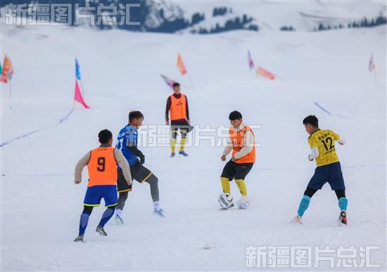 2023年12月16日,游客参加雪地足球比赛。
