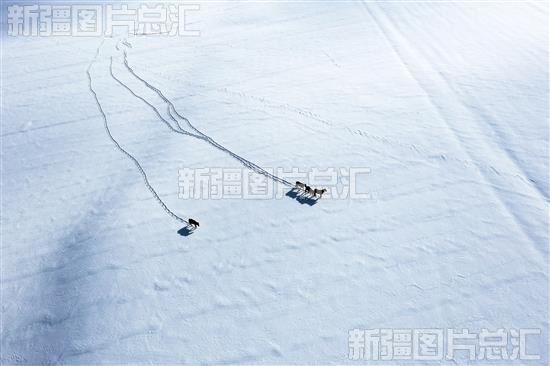 那拉提草原雪地如纸,群马在雪海之上踏出一串串印记,洒下无数闪耀的剪影,画出了一幅幅动态图画(2023年11月14日无人机摄)。