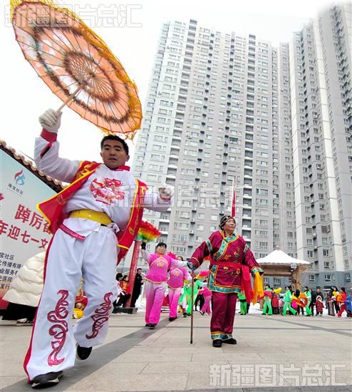 关键字:新疆 乌鲁木齐 高新区 新市区 长春中路 海宝社区 城市花园 社火队 居民 表演 秧歌