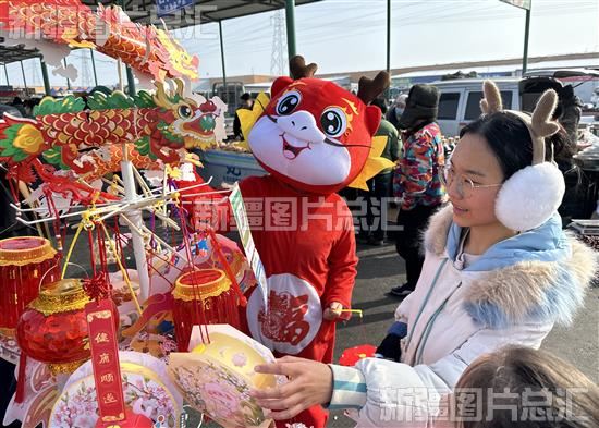 在新年饰品区,大红的春联、火红的灯笼、精美的年画、吉祥的“福”字,是各族群众的首选商品,也是整个市场年味最足的一片区域。