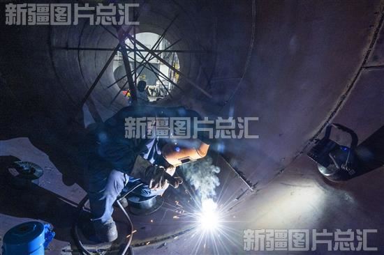 2024年2月5日,在中石油新疆油田分公司应急抢险救援中心七分公司车间技术人员焊接注汽锅炉内外壁。