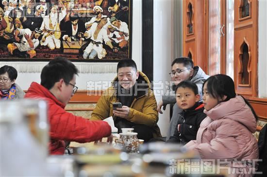 2024年2月6日,游客在位于喀什古城吾斯塘博依街的百年老茶馆里品茶聊天。