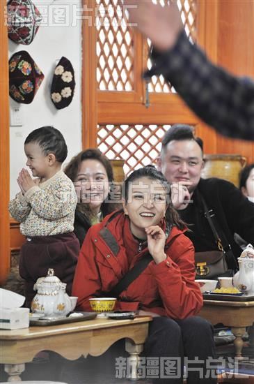 2024年2月6日,游客在位于喀什古城吾斯塘博依街的百年老茶馆里欣赏舞蹈表演。