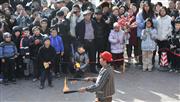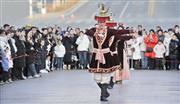 2024年1月30日, 游客在喀什古城景区观看文艺表演。