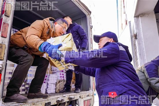 2024年2月18日,昌吉新华书店工作人员将教材装车发往各学校。
