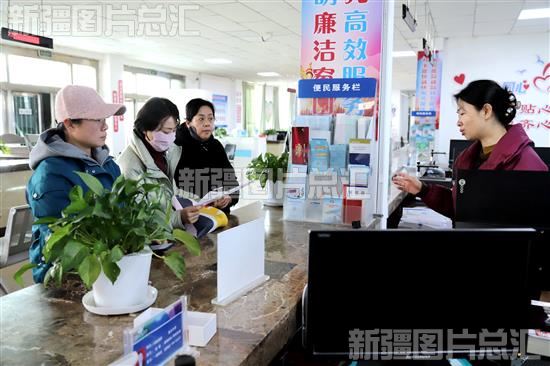 2024年2月18日,新疆生产建设兵团第二师22团河畔镇便民服务中心,工作人员在向群众解答养老社保缴费咨询。