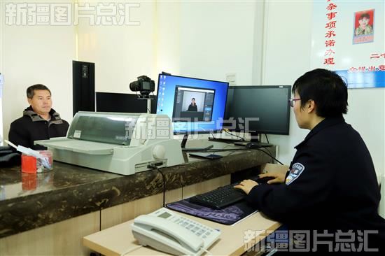 2024年2月18日,新疆生产建设兵团第二师22团河畔镇便民服务中心,工作人员为群众办理身份证业务。