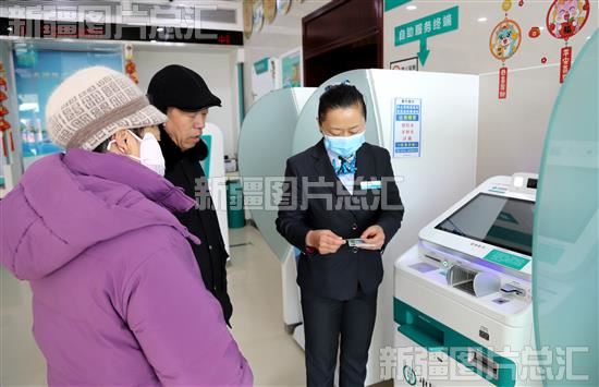2024年2月18日,新疆生产建设兵团第二师22团中国农业银行股份有限公司和静才吾库勒镇(22团)支行里,工作人员在为客户办理社保认证。