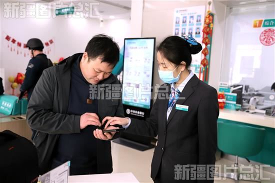 2024年2月18日,新疆生产建设兵团第二师22团中国农业银行股份有限公司和静才吾库勒镇(22团)支行里,工作人员在为客户办理手机掌银贷款业务。