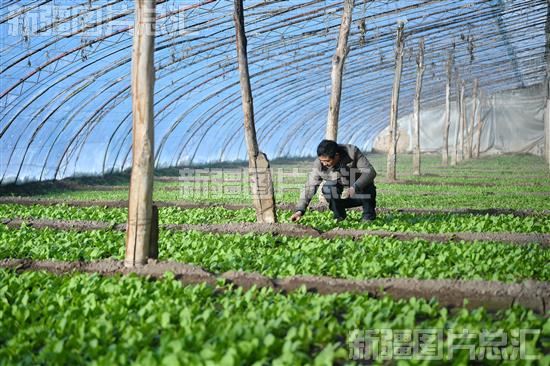 2024年2月17日,种植户在大棚里照看蔬菜。