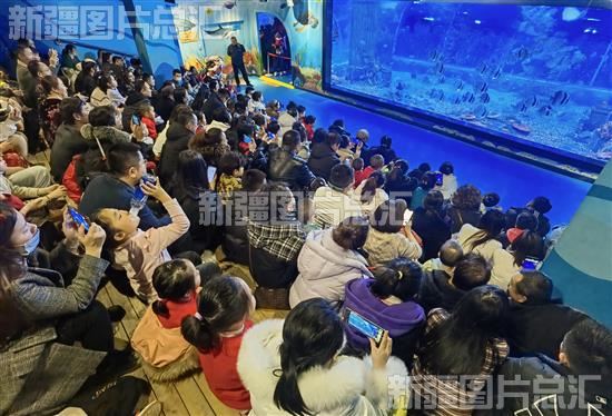 2024年2月16日,游客在乌鲁木齐县闲来小镇南山海世界海洋公园观看表演。