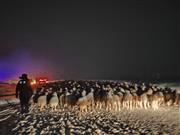 2024年2月17日凌晨,民警护送牧民及羊群安全转场。