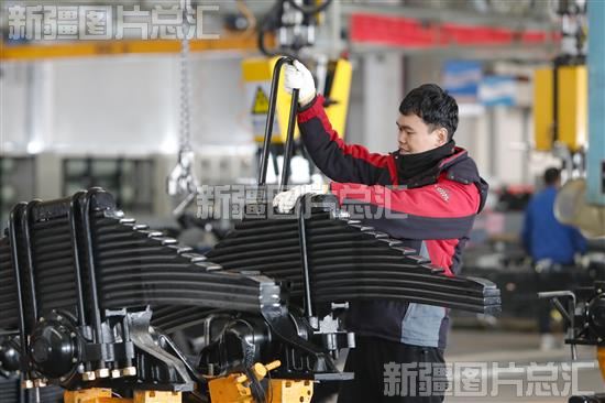 2024年2月19日,工人在位于乌鲁木齐经济技术开发区(头屯河区)的陕汽新疆汽车有限公司生产车间组装汽车悬架。