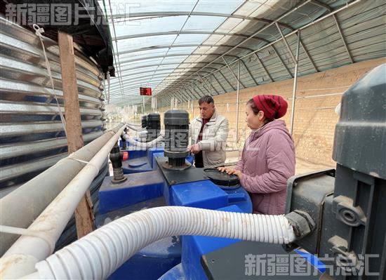 2024年2月15日,技术员和种植户在喀什市现代农业产业园智能温室大棚里操作自动施肥装置。