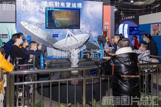 2024年2月15日,学生在新疆科技馆里体验模拟射电望远镜。