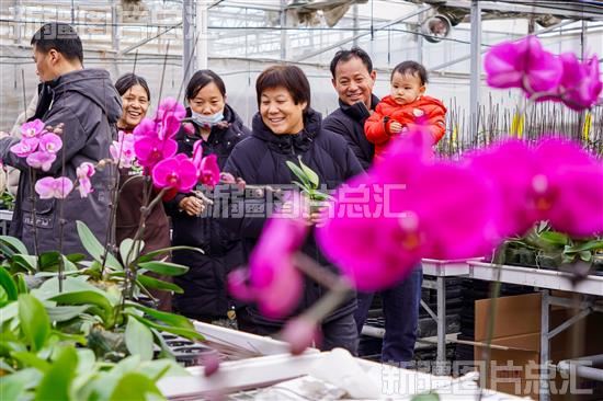 2024年2月14日,游客在昌吉国家农业高新技术产业示范区新疆农业博览园蝴蝶兰展馆内赏花游玩。