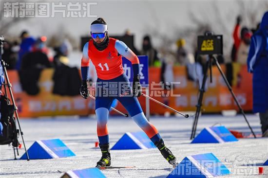 2024年2月19日,新疆队选手迪妮格尔·衣拉木江在越野滑雪公开组女子团体短距离(自由技术)比赛中。