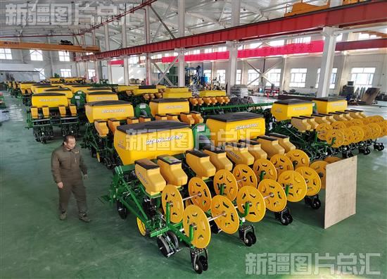 2024年2月19日,工作人员在伊犁播立得农机制造有限公司生产车间查看组装完成的播种机。该公司生产的气吸式精量免耕播种机主要用于玉米、黄豆、高粱等多种颗粒农作物精量播种,产品畅销伊犁、塔城、阿勒泰等地。