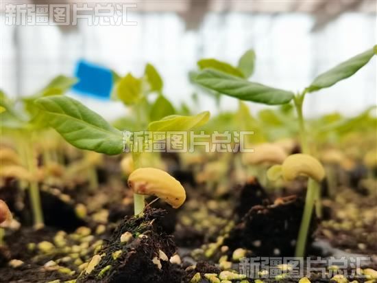2024年2月19日,泽普县育苗中心内豇豆种苗破土而出。