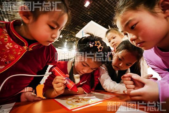 当日,哈密市文博院在该院组织小学生体验舞龙、剪纸、画糖画等传统民俗,让孩子们感受浓浓的年味。