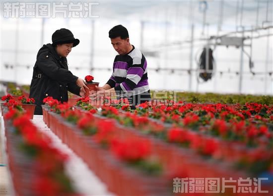 关键字:新疆 伊犁哈萨克自治州 伊犁州 伊宁县 萨地克于孜乡 伊犁国家农业科技园区 伊宁县现代农业科技示范园区 花卉基地 智能温室 市民 游客 赏花 选购 苗木繁育中心 工作人员 查看 花卉 蔬菜 育苗 现代农业 花卉经济