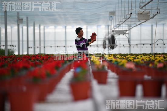 关键字:新疆 伊犁哈萨克自治州 伊犁州 伊宁县 萨地克于孜乡 伊犁国家农业科技园区 伊宁县现代农业科技示范园区 花卉基地 智能温室 市民 游客 赏花 选购 苗木繁育中心 工作人员 查看 花卉 蔬菜 育苗 现代农业 花卉经济