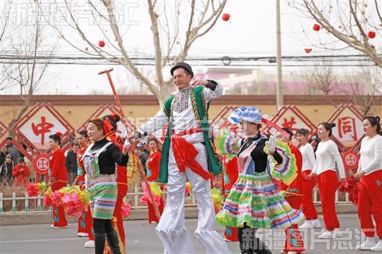当日,库车市牙哈镇开展“欢欢喜喜过大年,红红火火闹元宵”社火表演活动。来自各村的24支民间社火代表队进行舞龙舞狮、跑旱船、踩高跷、扭秧歌等民俗表演,在浓浓的文化氛围中喜迎元宵佳节的到来。