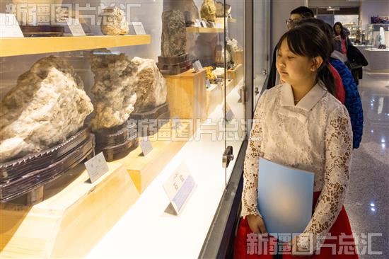 当日,乌鲁木齐市天山区黑甲山街道大湾北路西社区组织学生来到新疆地质矿产博物馆参观,了解地球科学和矿物学,丰富知识体系。