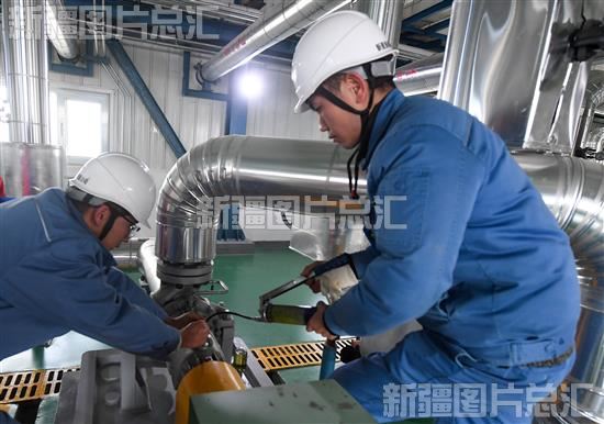2024年2月22日,工作人员在库车市的中国石化新疆库车绿氢示范项目抢修设备。