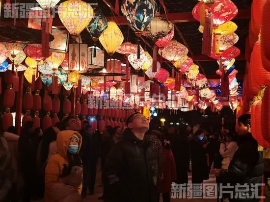 当晚,泽普县举办元宵节灯展活动,活动现场各式各样的特色灯笼竞相点亮。