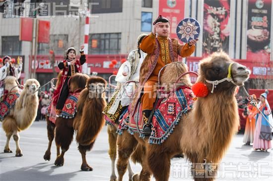 2024年2月24日,群众骑着骆驼参加社火表演。