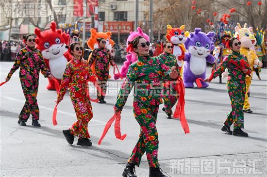 当日,沙雅县举办元宵节社火表演,当地干部群众走上街头舞龙舞狮,载歌载舞,欢庆元宵节。