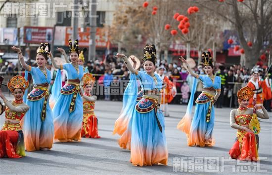 当日,沙雅县举办元宵节社火表演,当地干部群众走上街头舞龙舞狮,载歌载舞,欢庆元宵节。
