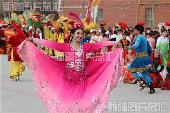 当日,乌什县人民广场热闹非凡,当地16支社火表演队身着盛装进行巡游表演。耍狮舞龙、跑旱船、跳民族舞,形式多样的表演吸引了各族群众参与其中。
