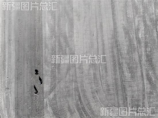2024年2月26日,新疆生产建设兵团第二师21团六连职工驾驶农机播种春小麦(无人机摄)。