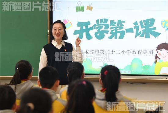2024年2月26日,乌鲁木齐市第22小学老师为学生上开学第一课。