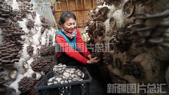 2024年2月22日,种植户在兵团第十师北屯市183团龙疆设施农业基地采收蘑菇。