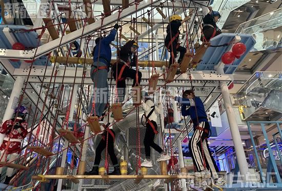 2024年2月10日,市民在乌鲁木齐德汇万达广场体验攀爬游戏。