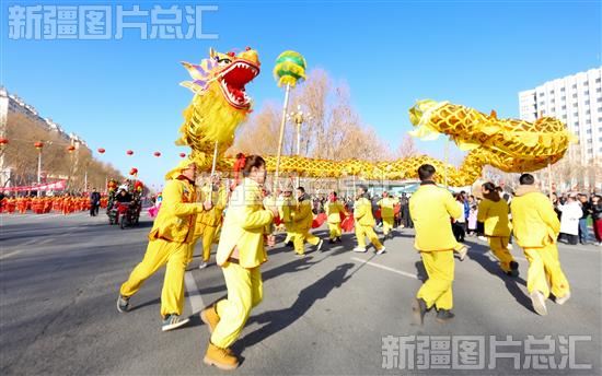 当日,新疆生产建设兵团第二师22团在河畔镇举办“春满河畔”社火表演,舞龙、舞狮等精彩的节目吸引了各族群众前来观看。